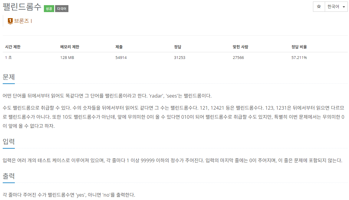 https://www.acmicpc.net/problem/1259